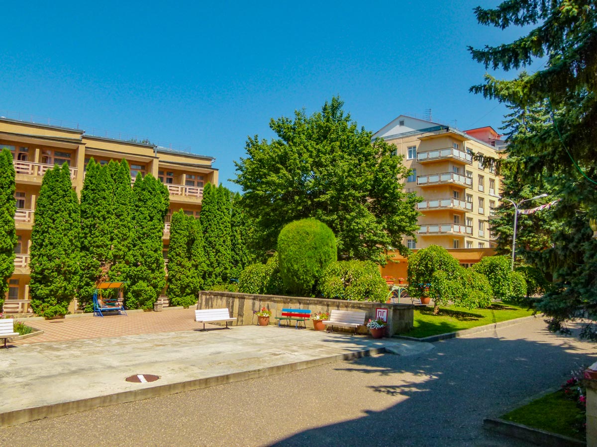 Санаторий «Москва» в Кисловодске располагает собственной ухоженной и зелёной территорией, которая занимает площадь свыше 9 гектаров. Такое обширное пространство позволило удобно распланировать и построить все здания и сооружения, не забыв и про немаленькую парковую зону для прогулок. Здесь есть даже собственный терренкур, прохождение по которому является частью многих программ лечения.