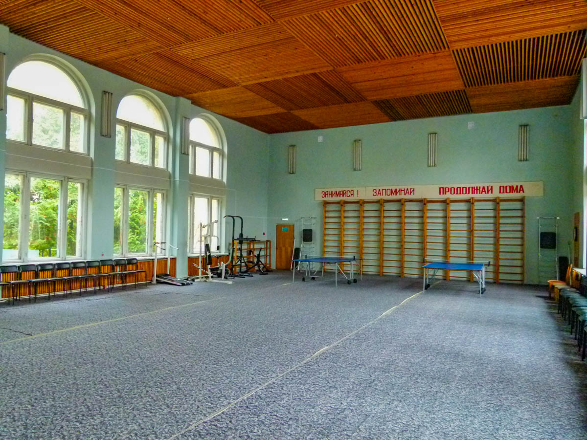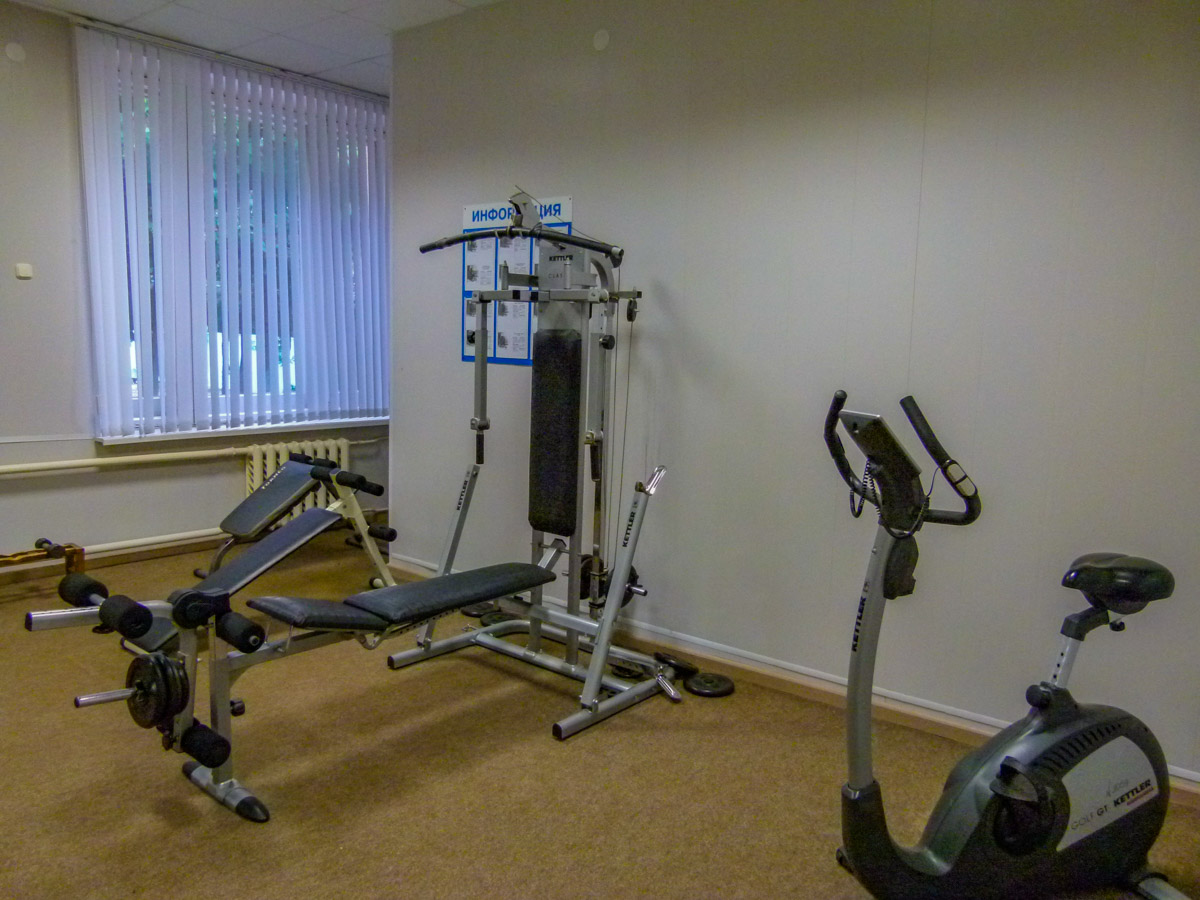 Тренажерный зал санатория «Москва» нельзя назвать очень большим, но здесь достаточно спортивных снарядов, чтобы провести полноценную тренировку. Прежде чем приступить к занятиям здесь, обязательно проконсультируйтесь с вашим лечащим врачом – существуют и противопоказания.